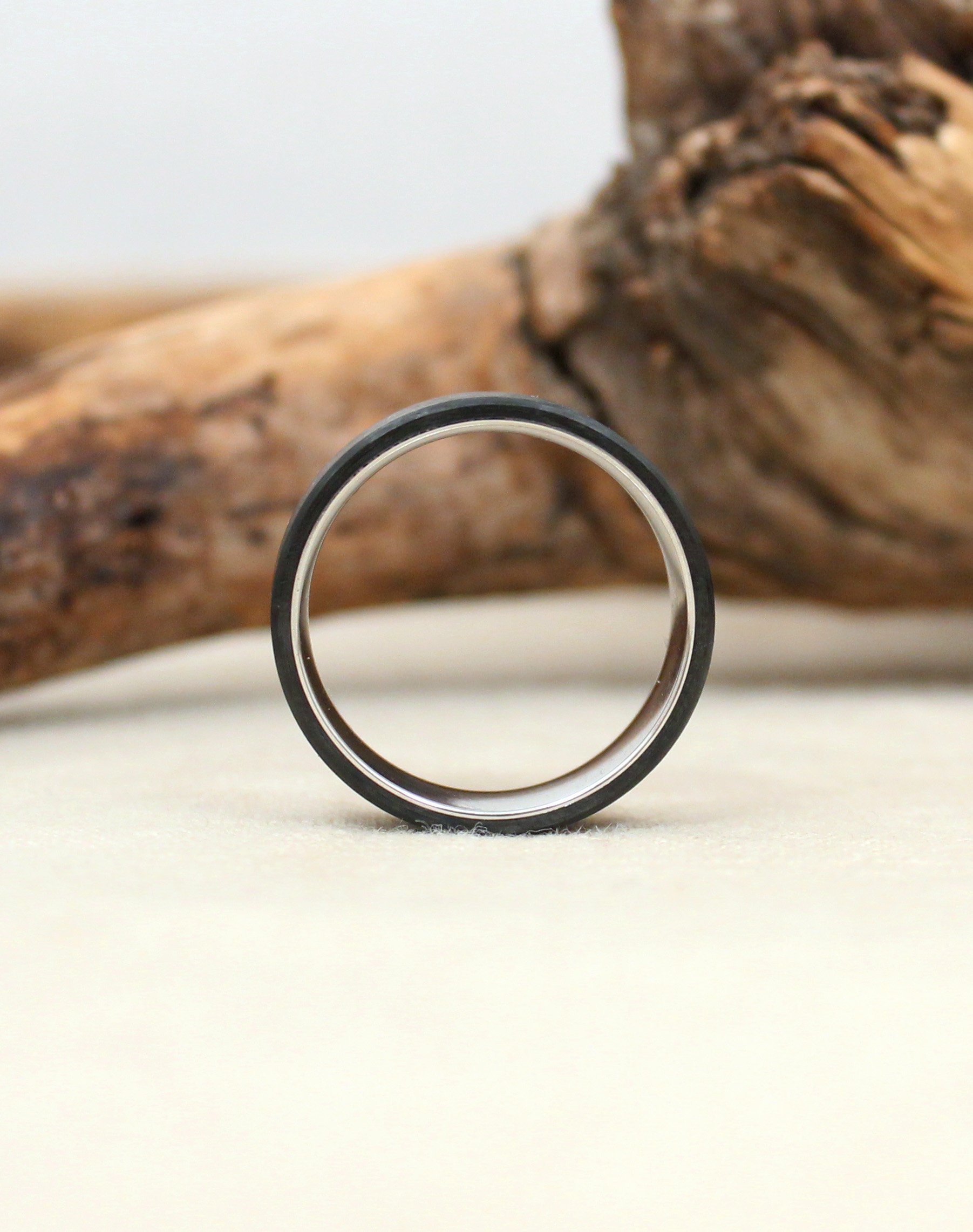 The inner portion of this ring is made of Cobalt - the most scratch resistant and shatterproof material I offer. Like titanium it is hypoallergenic and biocompatible. However, in many circumstances under which your Titanium ring might scratch, Cobalt will not. It is an alloy that is identical to Platinum in color, but it is an order of magnitude stronger. Cobalt offers nearly the scratch resistance of Tungsten Carbide, but unlike Tungsten, Cobalt will not shatter if dropped.
