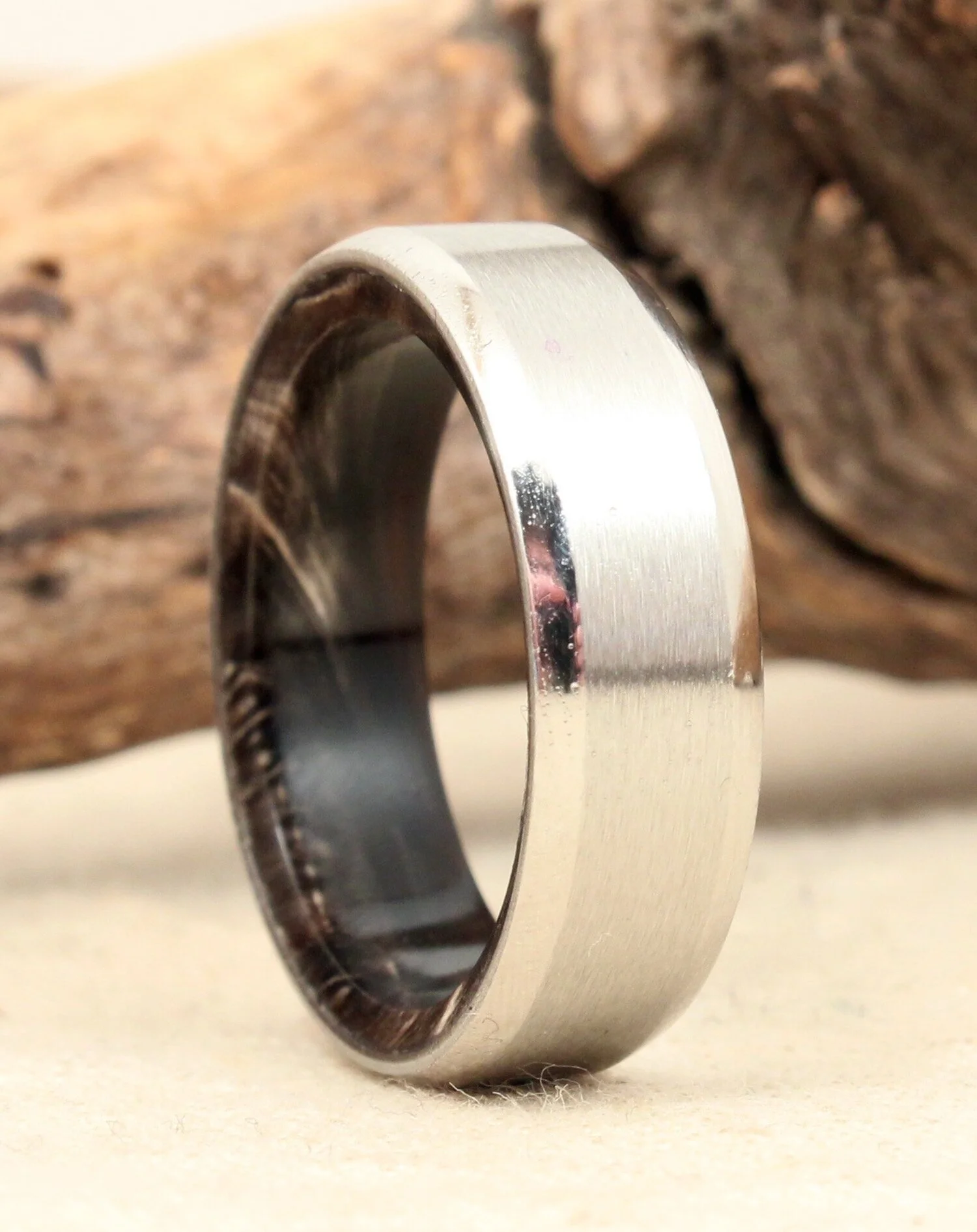Each ring is given multiple coats of a hybrid epoxy finish, which is completely water-proof and soap proof. This protective coating is sanded up to 12,000 grit for an unbelievable, glass-like finish.